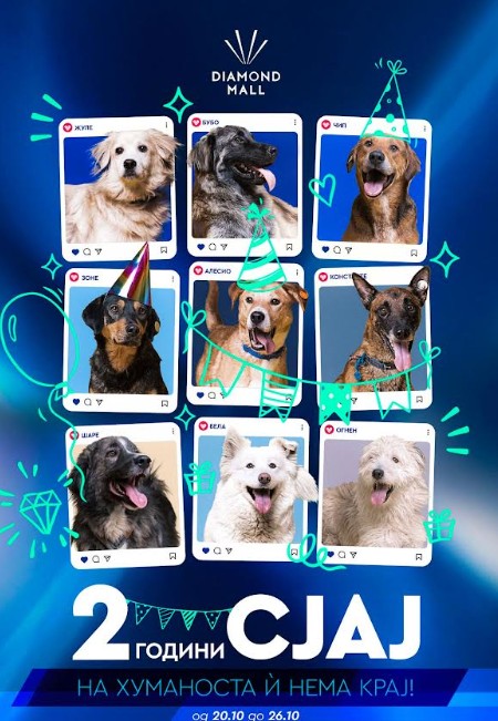 Diamond Mall ја започна својата роденденска прослава со повик до граѓаните на заедничка хумана мисија, посветена на грижа за напуштените животни и поттикнување на нивно вдомување. Наместо класична прослава, Diamond Mall преку низа активности сака да ја подигне свесноста за грижата за бездомните животни и да ги поттикне граѓаните повеќе да вдомуваат улични кучиња.