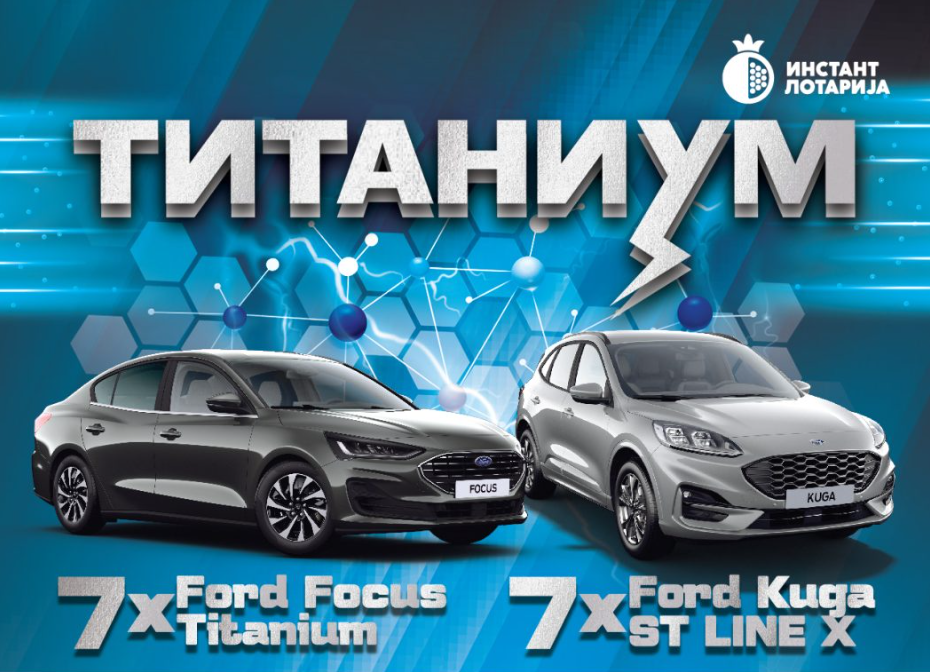 Кога среќата се бара и чудата се можни – доказ за ова е инстант лозот „Титаниум“ на Државна лотарија. Со симболичен влог од само 100 денари, секој играч има единствена можност да стане добитник на еден од седумте Ford Focus Titanium, на еден од седумте Ford Kuga ST Line X или на различни парични добивки.