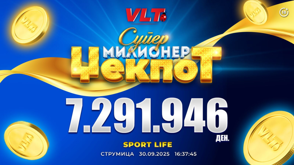 СУПЕР МИЛИОНЕР џекпотот е освоен на видеолотариските терминали кај нашиот деловен соработник Спортлајф Треид во Струмица.