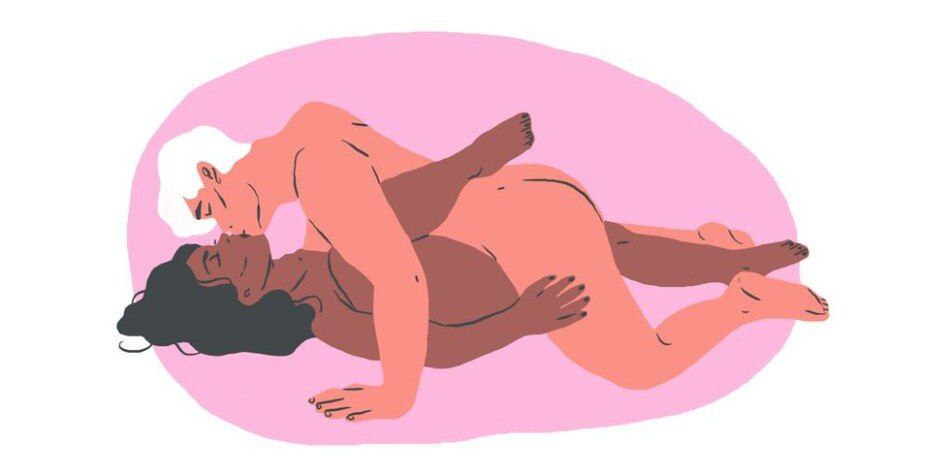 Жената лежи под партнерот, кого со едната нога го обвиткува околу струкот, додека другата и е испружена.