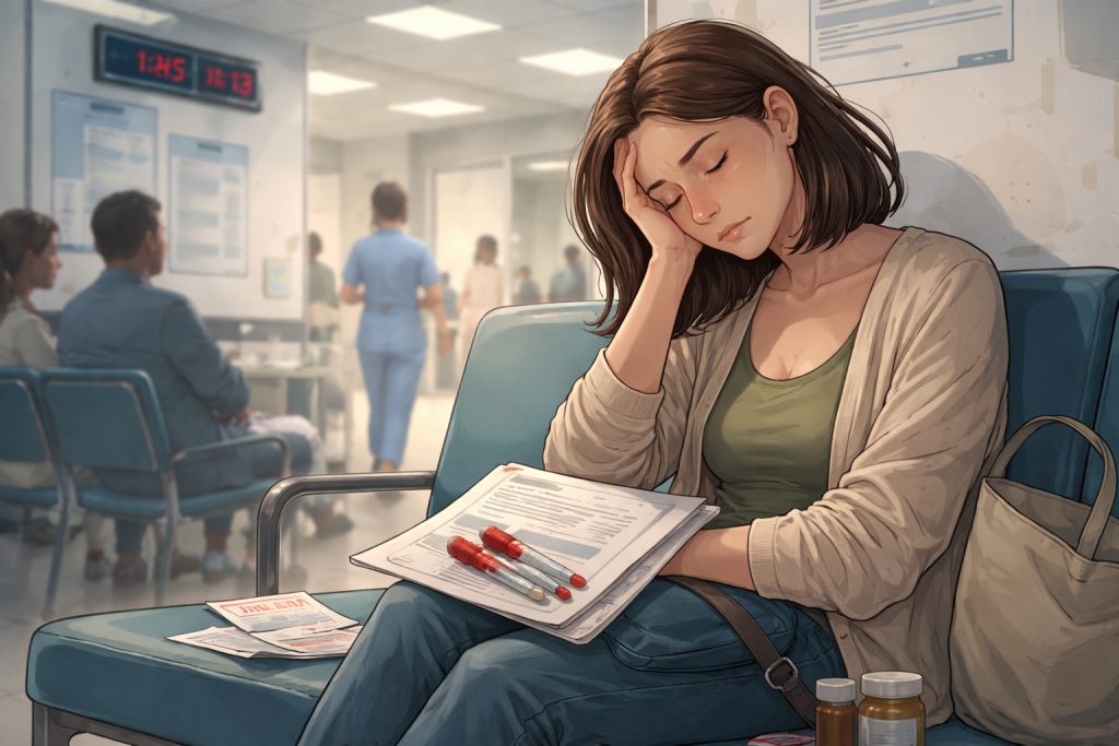 Хроничната болест не боли само во телото. Боли во тие денови што ги губиш по чекални. Во неизвесноста. Во чувството дека животот ти поминува меѓу „ќе видиме“ и „дојдете пак“.