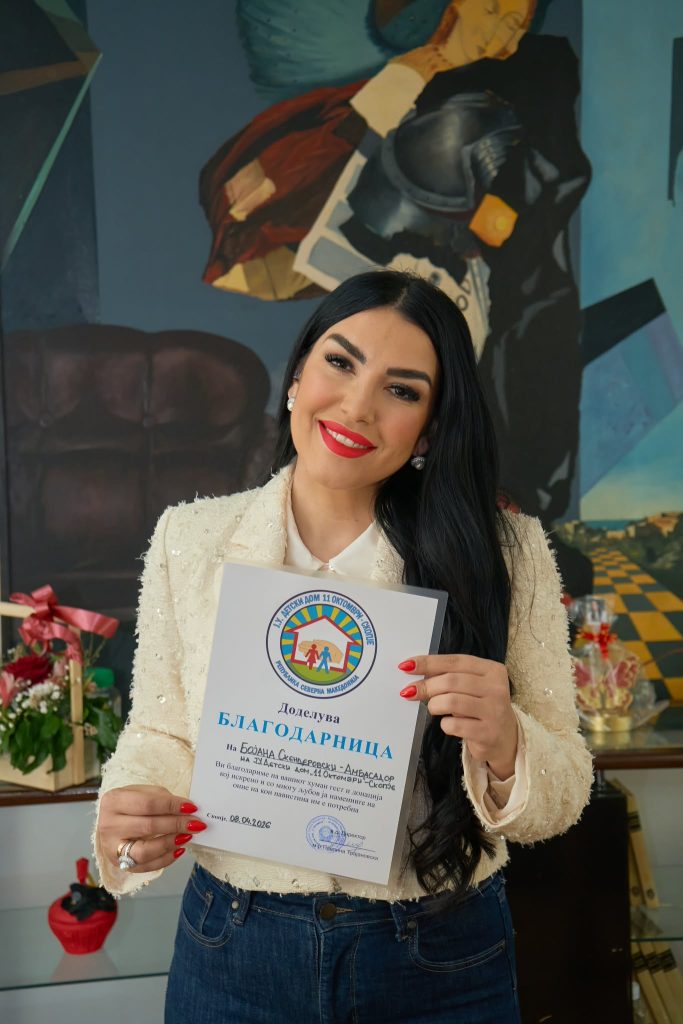 „Малите дела на добрина можат да го променат светот многу повеќе од големите зборови“ – со оваа порака Бојана Скендеровски сподели значаен момент од својот живот и кариера. Од вчера таа и официјално ја презеде улогата амбасадор на хуманоста на Домот за деца без родители „11 Октомври“, откако беше потпишан меморандум за соработка со директорката на установата. Ова партнерство има за цел да ја подигне свеста за потребите на децата без родителска грижа и да поттикне поголема поддршка од јавноста.
