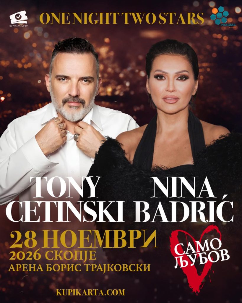 На 28 ноември 2026 година, Скопје ќе биде дел од концертен проект што обединува две од најконзистентните и највлијателни музички имиња на регионалната поп-сцена, Тони Цетински и Нина Бадриќ.