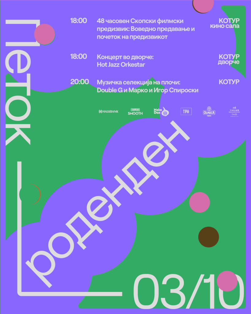 Прославата за седмиот роденден на КОТУР ќе започне со концерт во дворче на HOT JAZZ ORKESTAR (Бојан Петков гитара, Иво Солдатовиќ кларинет, Андреј Момировски гитара и Александар Ниниќ туба), а ќе се заокружи со музичка селекција на плочи од Игор Спиркоски, Double G и Марко.Програма за 3 октомври (петок)