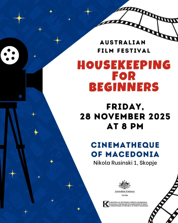 Публиката вечер, во 20:00 часот, ќе може да го погледне австралискиот филм „Домаќинство за почетници“ (Housekeeping for Beginners) на истакнатиот македонско-австралиски филмски режисер Горан Столевски.