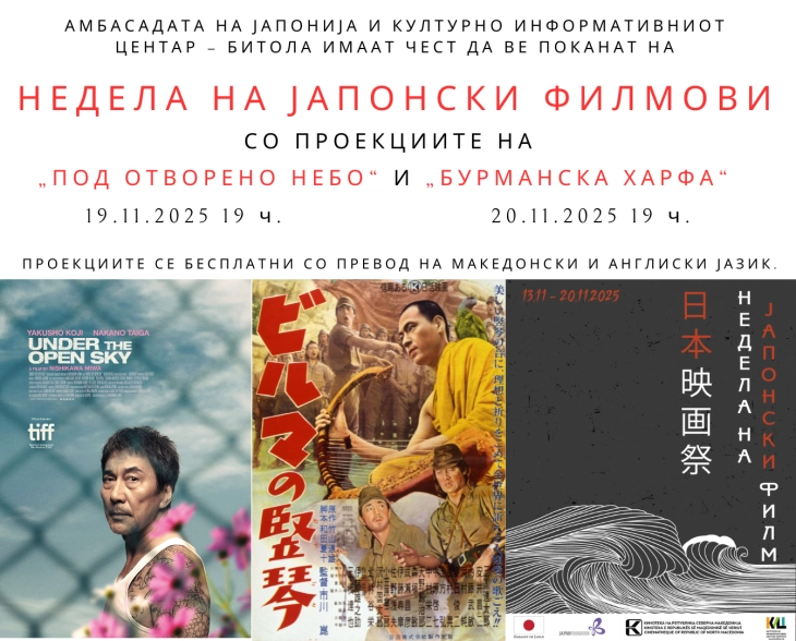 Културно информативен центар (КИЦ)-Битола во соработката со Амбасадата на Јапонија, организираат „Недела на јапонски филмови“.