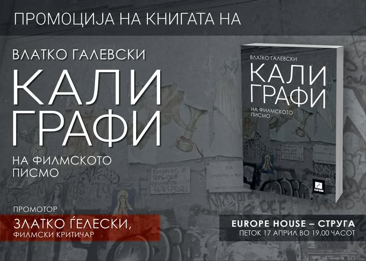На 17 април во Europe House Struga, од 19-20.30 часот, ќе се одржи промоција на новата книга на Влатко Галевски „Калиграфи на филмското писмо“ (2025), проследена со разговор со публиката.