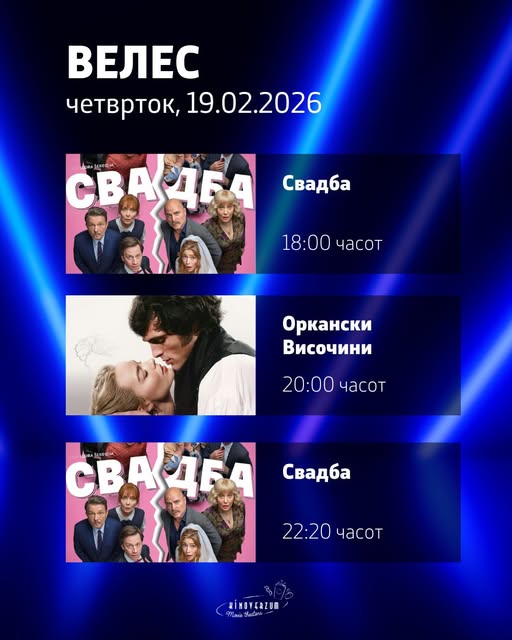Во Киноверзум во Велес денеска проекции на „Свадба“ и „Оркански височини“