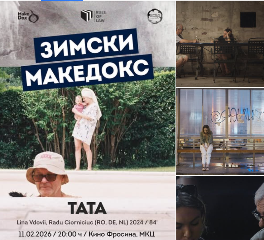 Фестивалот на креативен документарен филм „МакеДокс“, во рамките на програмскиот сегмент „Зимски МакеДокс“, организира проекција на документарниот филм „Тата“ на Лина Вдови и Раду Чорнициу, проследена со дискусија со режисерите и со експерти на темата.