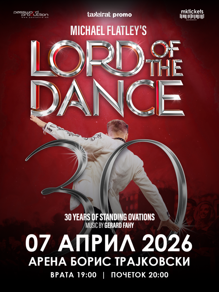 На 7 април 2026 година, ирското музичко-танцово мајсторство што веќе 30 години го воодушевува светот пристигнува во Скопје, LORD OF THE DANCE во арена „Борис Трајковски“.