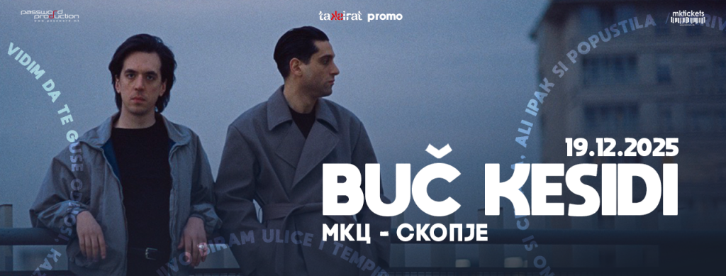 Утре, 19 декември во Младинскиот Културен Центар во Скопје, регионалниот музички феномен Буч Кесиди ќе го претстави својот нов студиски албум „ Модерни врски“ (Moderne veze) на самостоен концерт кој се одржува како дел од офф-програмата на годинашниот Таксират Фестивал. Со почеток во 20:00 часот, на сцената во Денсинг сала, бендот ќе ги донесе најголемите хитови од својата исклучително успешна кариера, со акцент на актуелниот албум кој од многу критичари е прогласен за издание на годината.