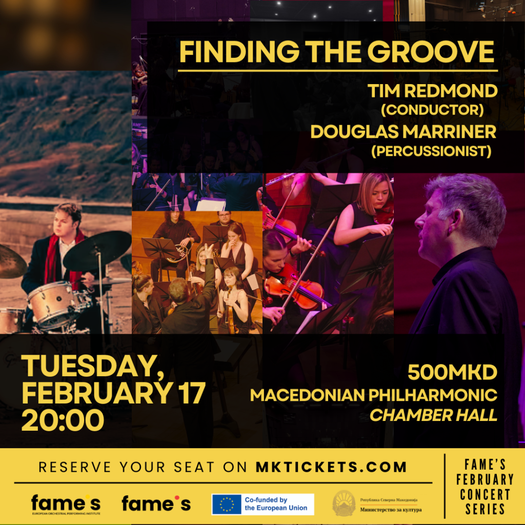 Со концертот „Пронаоѓање на ритамот“, Институтот FAME’S ја продолжува својата февруарска концертна серија, нудејќи ѝ на публиката современ модел на оркестарска едукација, во кој младите музичари стекнуваат искуство преку директна соработка со врвни интернационални уметници и сценска изведба пред публика.