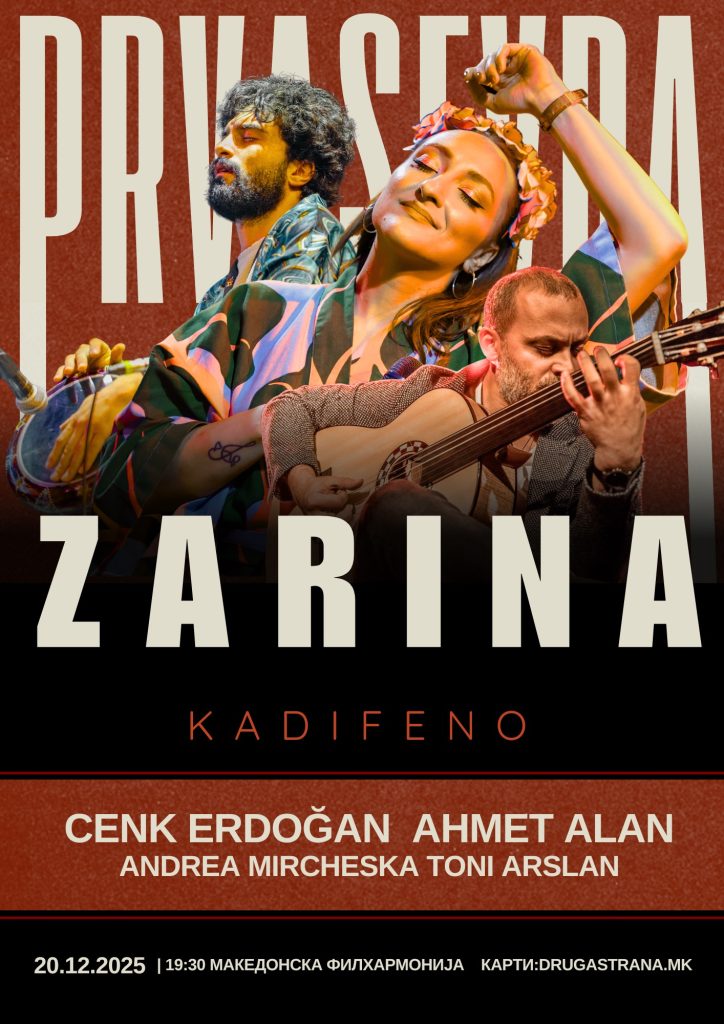 На концертот Зарина Првасевда ќе го претстави својот проект насловен „КАДИФЕНО“, а за дополнителната магија на вечерта ќе се погрижат врвни музичари. За прв пат во Скопје пристигнува еден од најголемите мајстори на фретлес-гитарата, турскиот виртуоз Џенк Ердоган, како и перкусионистот и мултиинструменталист Ахмет Алан, уметници чија маестралност го освојува светот.