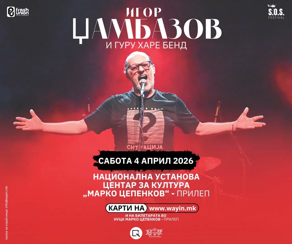 Најдоброто од Игор Џамбазов со ‘Гуру Харе бенд’ ќе биде на сцената, при што најпознатите хитови ќе прозвучат во полн сјај. Ќе се изведат и песни од последниот албум ‘Првите триесет’. Ќе се слават блузот и пишаниот збор. ‘Најдоброто од Игор Џамбазов’ е во рамките на ‘С.О.С фестивалот‘, кој во 2026 ќе се одржи во повеќе градови низ Македонија и е поддржан од Министерството за култура и туризам“, вели организаторот „Фреш унион“.