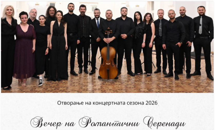 НУ Камерен оркестар на Битола свечено ја отвора концертната сезона за 2026 година со концертот „Вечер на романтични балади“, кој ќе се одржи на 24 февруари 2026 година во Офицерски дом Битола.