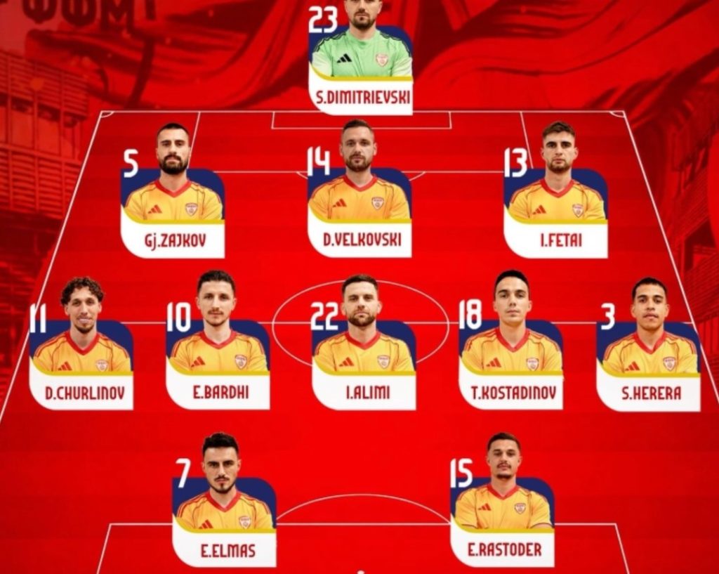 Селекторот на македонската фудбалска репрезентација Гоце Седлоски го одреди почетниот состав за вечерашниот натпревар против Ирска во Даблин, во пресметката на двете поразени селекции во полуфиналните баражи за пласман на Светското првенство 2026.