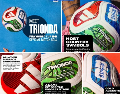 Топката, наречена Трионда, повторно е дизајнирана од германскиот производител на спортска опрема Адидас, кој е официјален партнер на ФИФА од Светското првенство во 1970 година.
