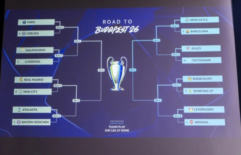 Единствениот италијански претставник во осминафиналето Аталанта за ривал ќе го има Баерн Минхен, додека Атлетико Мадрид ќе биде домаќин на Тотенхем, а Баер Леверкузен го пречекува лидерот на Премиер лигата Арсенал.