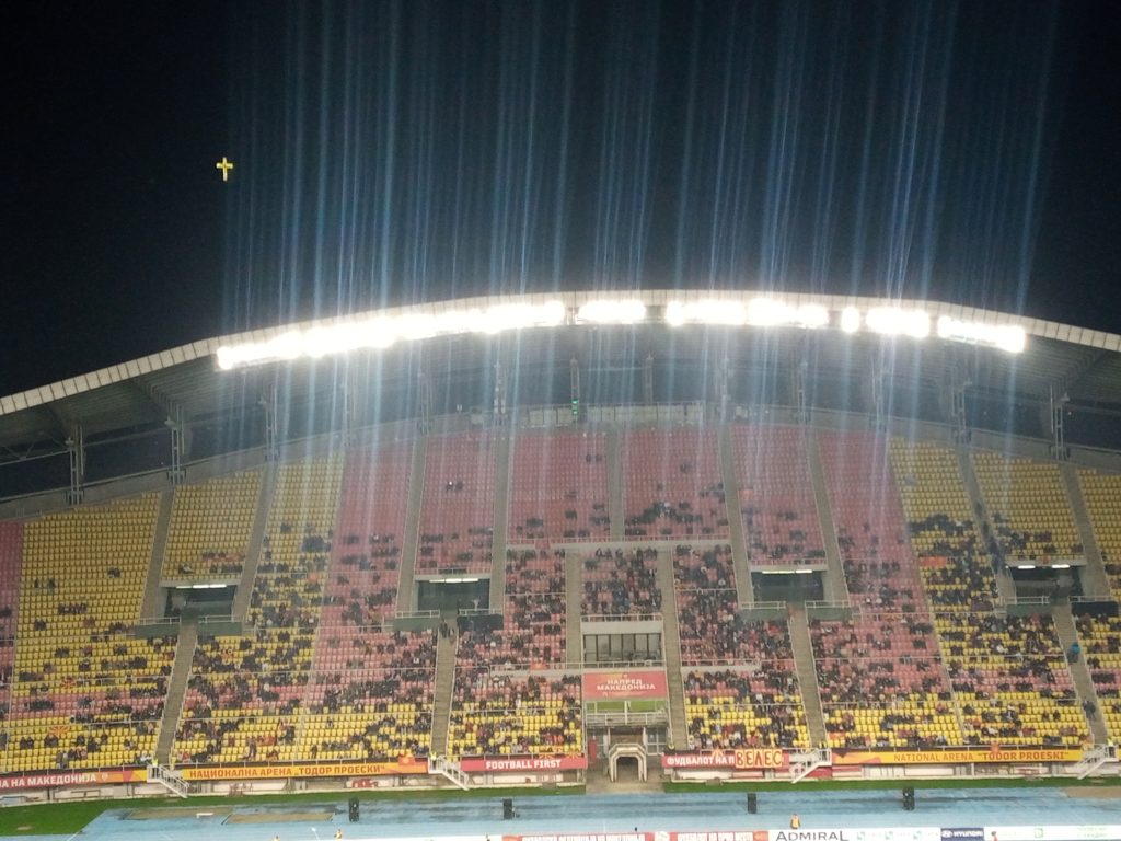 Само неколку илјади гледачи ја бодрат македонската репрезентација на пријателскиот меч со Летонија .Слаба посета и покрај тоа што влезот е бесплатен. Македонија игра во изменет состав.Од почетните во тимот се само капитенот Барди и Димитриевски.