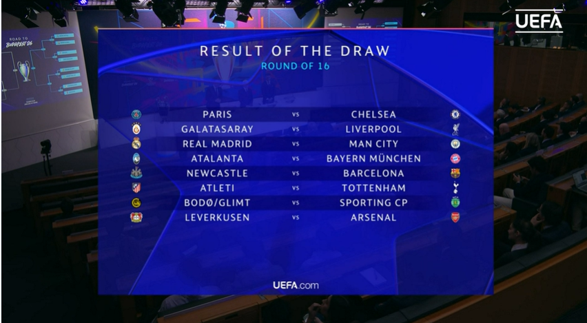 Ждрепката за осминафиналето, четвртфиналето и полуфиналето на Лигата на шампионите за сезоната 2025/26 се одржа во Нион, Швајцарија, напладне. Осумте победници од плејофот во нокаут фазата им се придружија на осумте најдобри клубови од лигашкиот дел од натпреварувањето, дефинирајќи го патот до големото финале во Будимпешта.