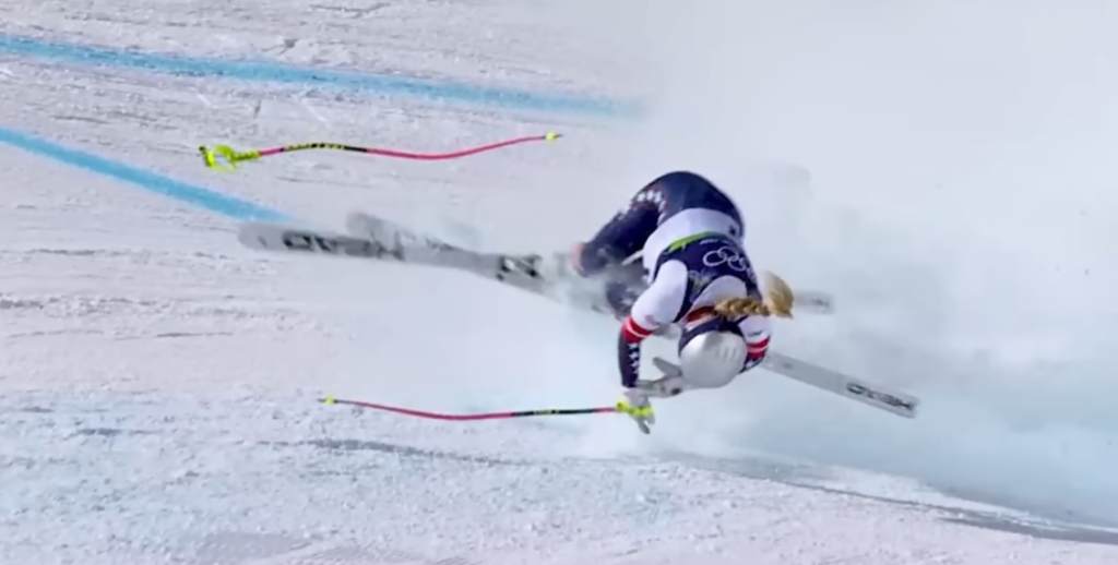 Нејзината олимписка трка траеше само 12 секунди. По неколку свиоци, таа удри со десното рамо на капијата, ја изгуби рамнотежата и силно падна. Од местото на несреќата беше однесена со хеликоптер во болница.