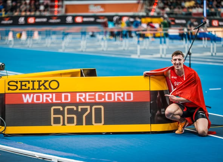 Швајцарецот Симон Ехамер го одбележа саботниот ден на Светското атлетско првенство во сала во Торино, поставувајќи нов рекорд во седмобој.