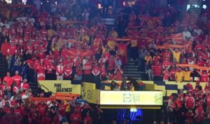 На неколку минути пред почетокот на дуелот меѓу македонските и португалските ракометари во салата во Хернинг се подгрева атмосферата. Засега Македонија игра добро и мечот е 4-2 за нашата селекција Како и на сите натпревари на големите натпреварувања – македонските фанови знаат да бидат голема поддршка за македонските ракометари.