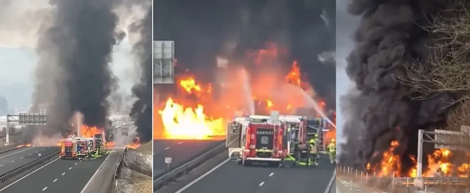 Според неофицијални информации, во несреќата во која учествувале повеќе возила, експлодирала цистерна, објавува N1 Словенија.