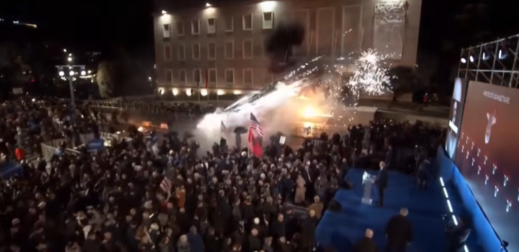 Тензиите ескалираа веднаш по обраќањето на лидерот на Демократската партија, Сали Бериша, кога дел од присутните почнале да фрлаат пиротехнички средства и запаливи предмети кон владините институции. Нередите продолжиле и пред објектот на Парламентот, каде што биле запалени повеќе контејнери за отпад и оштетена урбана опрема.