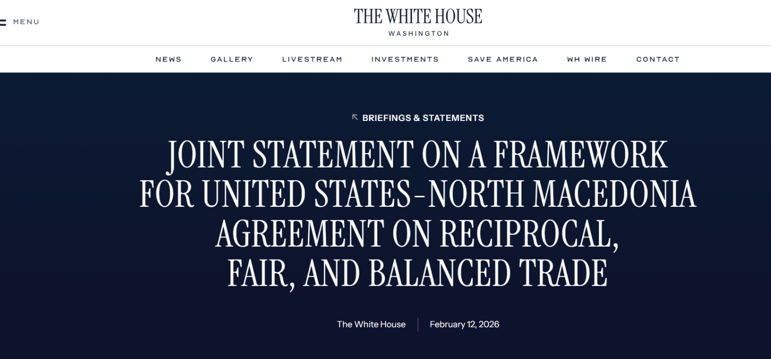 Белата куќа објави: САД и Македонија договорија рамка за „реципрочна, фер и балансирана трговија“