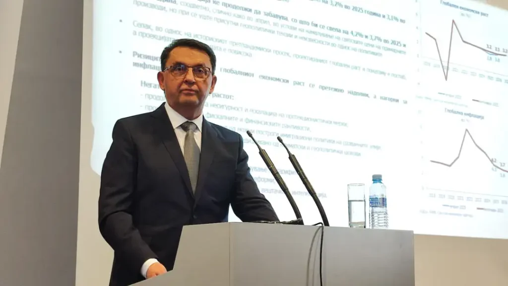 Најновите макроекономски проекции за периодот 2025 – 2028 година укажуваат на отпорност и солиден раст на економијата. За годинава се очекува раст од 3,5 отсто, во периодот 2026 – 2028 тој би забрзал на 4 отсто. Во однос на инфлацијата, просечната стапка ќе изнесува 3,9 отсто, а во натамошниот период ќе следи патека на надолно приспособување и враќање кон историскиот просек, истакна Славески на прес-конференција.