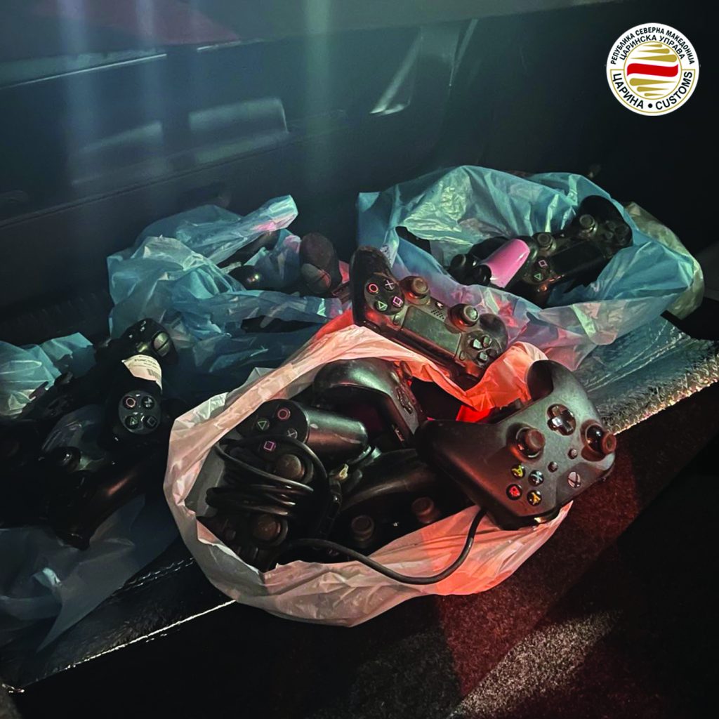 – Во автомобил кој се пријавил за влез во државата на граничниот премин Блаце, биле пронајдени 2 употребувани конзоли PLAYSTATION 4, 49 употребувани контролери за PLAYSTATION 4 и 9 употребувани контролери за X-BOX.