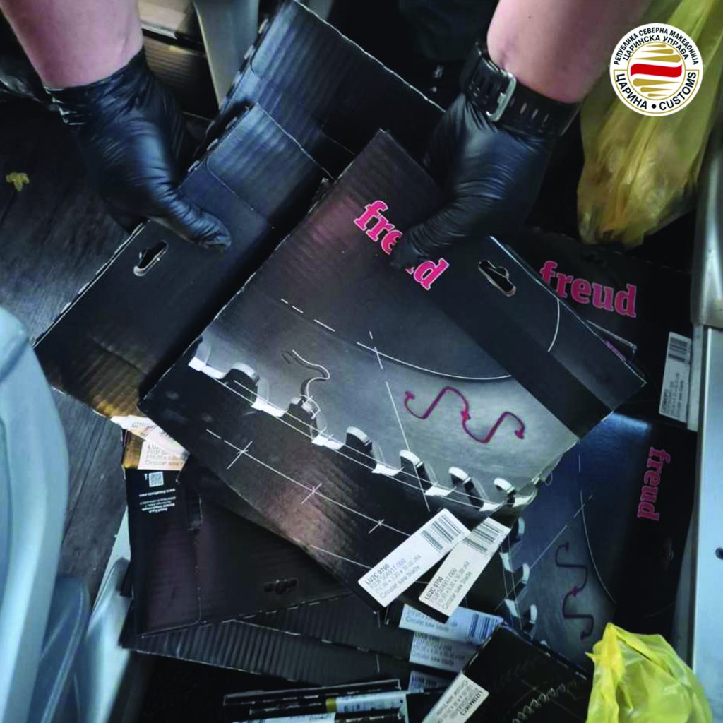 410 пара патики со ознаки на заштитена трговска марка се задржани на излез од државата на граничниот премин Блаце. Стоката е задржана поради сомневање дека повредува права од интелектуална сопственост. Мобилните царински тимови ја откриле при контрола на камион со турски регистрски таблички кој бил натоварен со стока со потекло од Турција наменета за фирма од Косово.