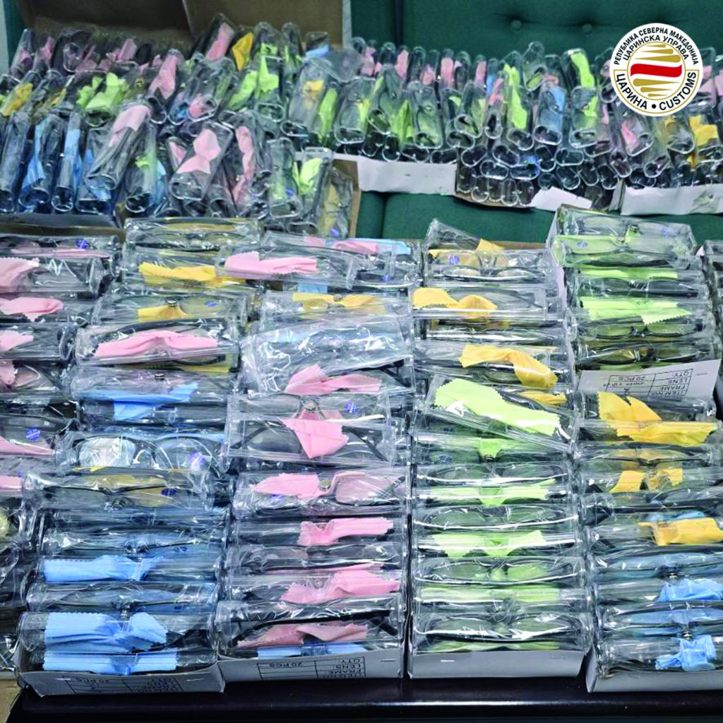 · Запленети над 600 парчиња очила со диоптер за кои увозник не поседувал дозвола за увоз. Случајот е откриен во царинска испостава Гевгелија при контрола на разна стока со потекло од Кина којашто била пријавена за увозно царинење.