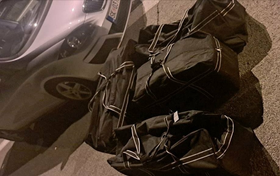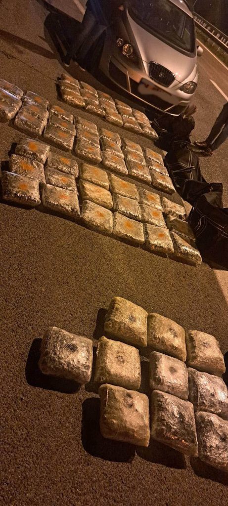 Од извршениот преглед на патничкото возило “сеат алтеа” управувано од Ф.Н. пронајдени и одземени се четири црни торби, во кои биле сместени вкупно 65 кеси со растителна материја со вкупна тежина од 65 килограми и два телефонски апарати.