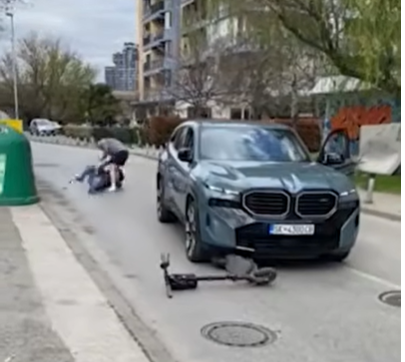 Снимка од инцидентот во општина Аеродром, во кој возач на џип „БМВ“ намерно удри во возач на тротинет и потоа излезе од возилото и го нападна човекот, кој лежеше на земја испрати читател на „Слободен печат“, кој случајно се нашол на местото.