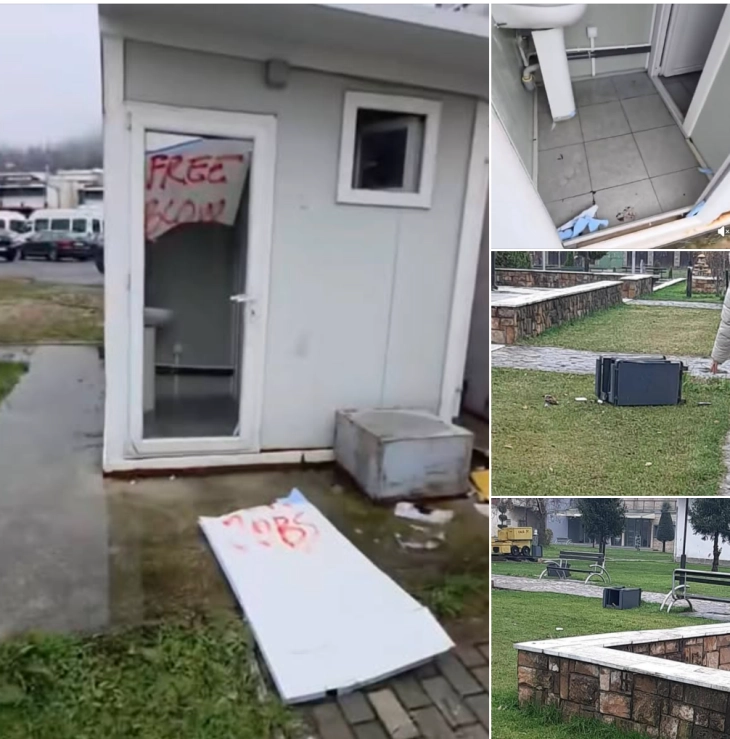Како што соопшти таа, на терен е утврдено оштетување на урбаната опрема во Паркот на рударите, како и значителна штета на градскиот јавен тоалет лоциран кај автобуската станица, каде што е уништена влезната врата и дел од внатрешниот инвентар.