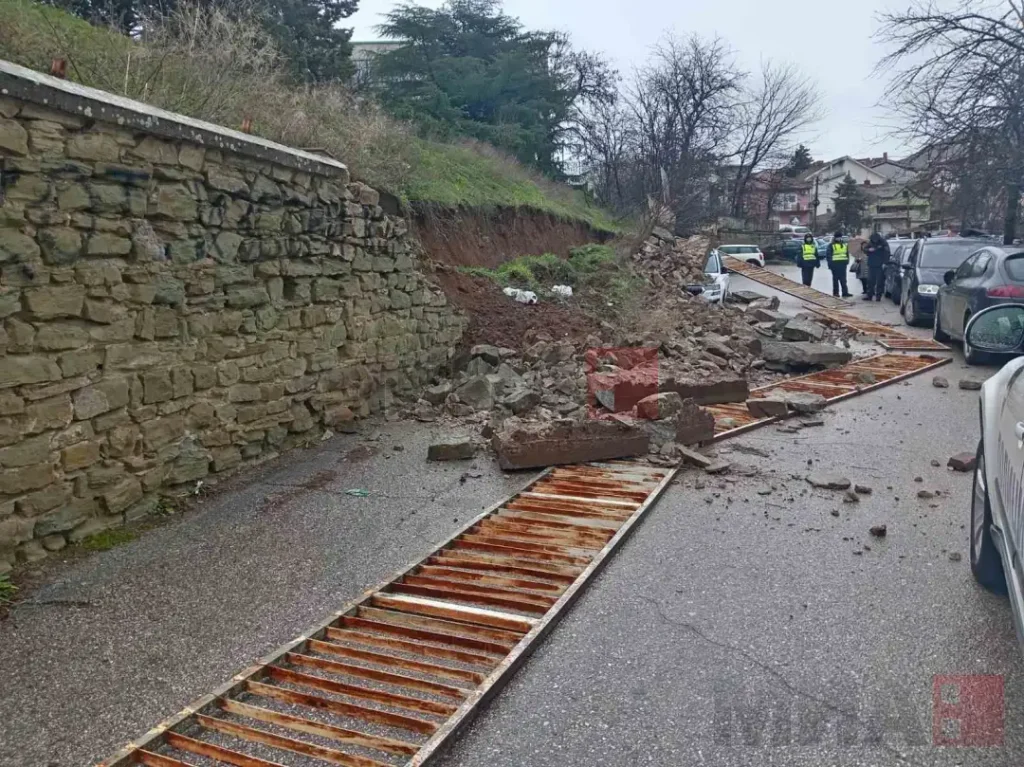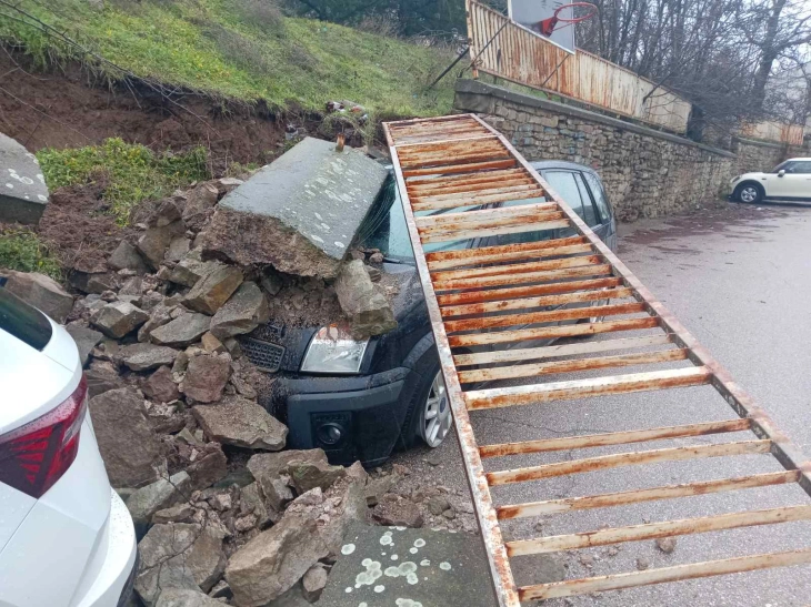Свлечиште од земја урна дел од потпорниот ѕид на Клиничка болница-Штип, по што оградата и земјата се свлекле врз две возила со скопска и велешка регистерска табличка.