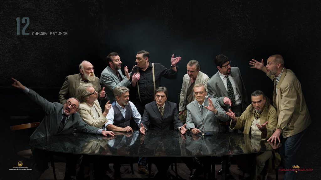 Претставата „12“работена по мотивите на Реџиналд Роуз (12 Angry Men), во адаптација и режија на Синиша Евтимов, а во продукција на Македонскиот народен театар (МНТ) на Фестивалот „5РЕ“ во Велес освои две награди – за најдбра претстава и за најдобра режија, соопштија од Националниот театар.