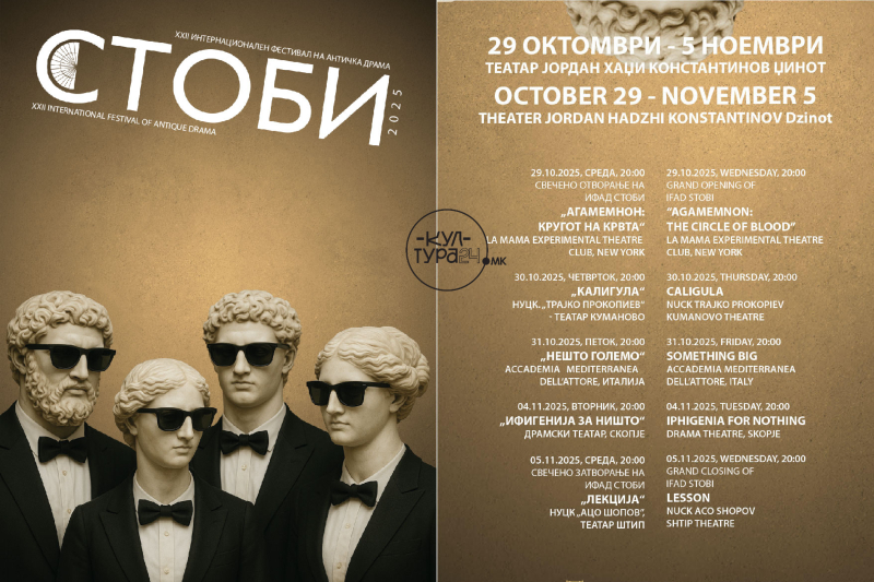 На 29 октомври свечено ќе биде отворено 22. издание на Интернационалниот фестивал на античка драма „Стоби“. Фестивалот е во организација на театарот „Јордан Хаџи Константинов – Џинот“ од Велес а ќе трае до 5 ноември.