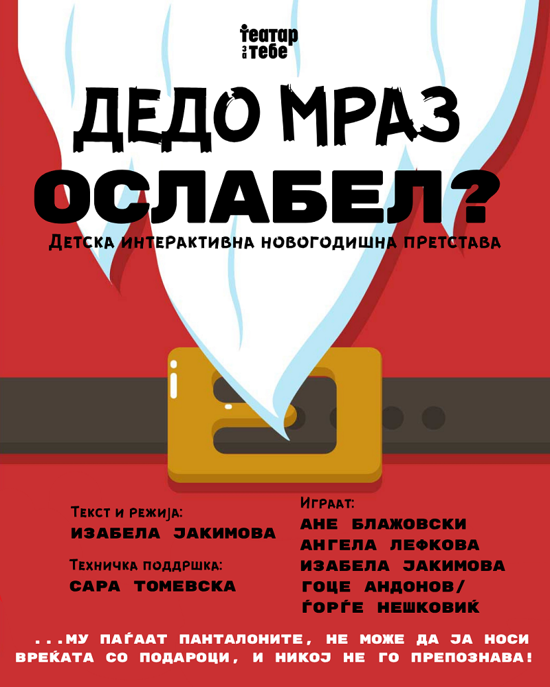 „Дедо Мраз ослабел?” и „Заспаната добрина”, се двете детски новогодишни претстави што за нашата најмала публика ќе се играат на 25, 26, 27 и 30 декември на големата сцена на Драмски театар Скопје.