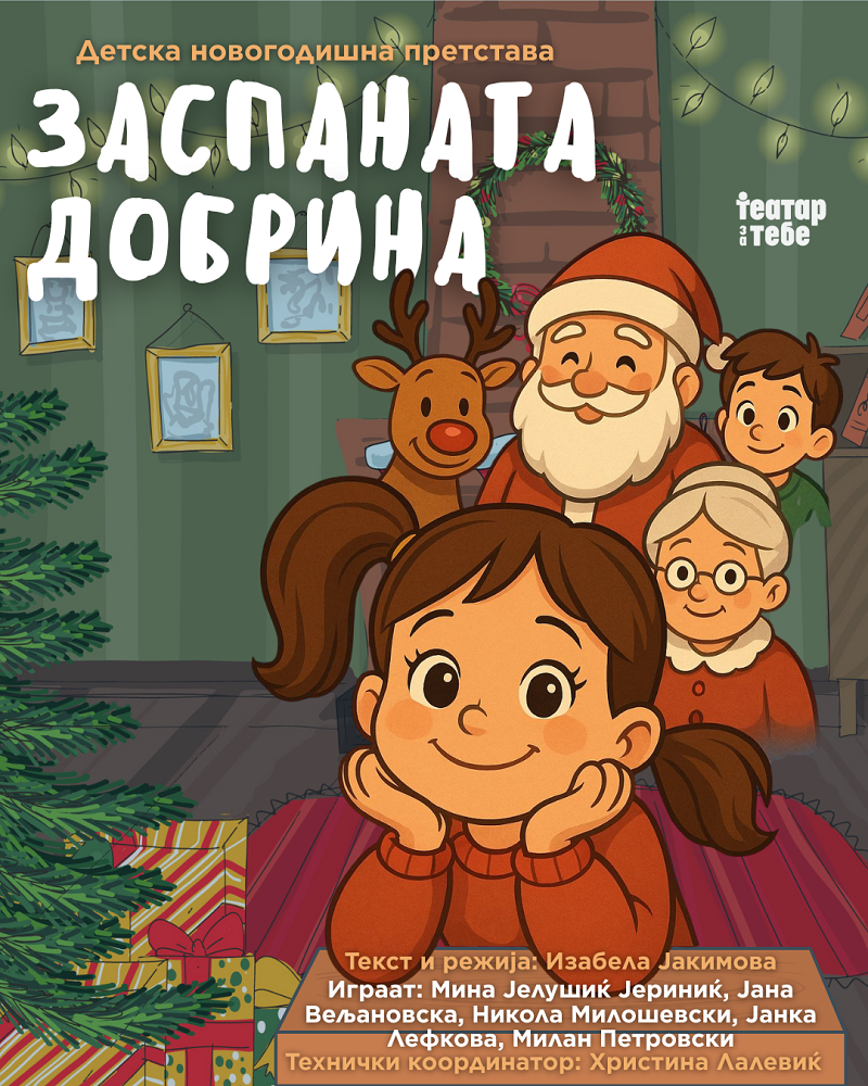 “Заспаната добрина” е новогодишна детска претстава исполнета со хумор, авантура и важни воспитни пораки. Приказната ги следи Рудолф, Милан и Баба Мразица, кои се подготвуваат за Новата година, сѐ додека не се појави непослушното девојче Тина, решено да ја уништи новогодишната магија. Но зад нејзината „лошотија“ се крие нешто многу подлабоко – осаменост, тага и желба некој конечно да ја слушне. Кога Тина ќе ја киднапира Баба Мразица, Милан и Рудолф тргнуваат во спасувачка мисија. Преку игри, музика, шеги и интеракција со публиката, децата откриваат дека не постојат лоши деца, туку само деца кои имаат потреба од внимание, пријателство и љубов. Претставата ја нагласува важноста на: пријателството и заедништвото, здравите навики, емпатијата.