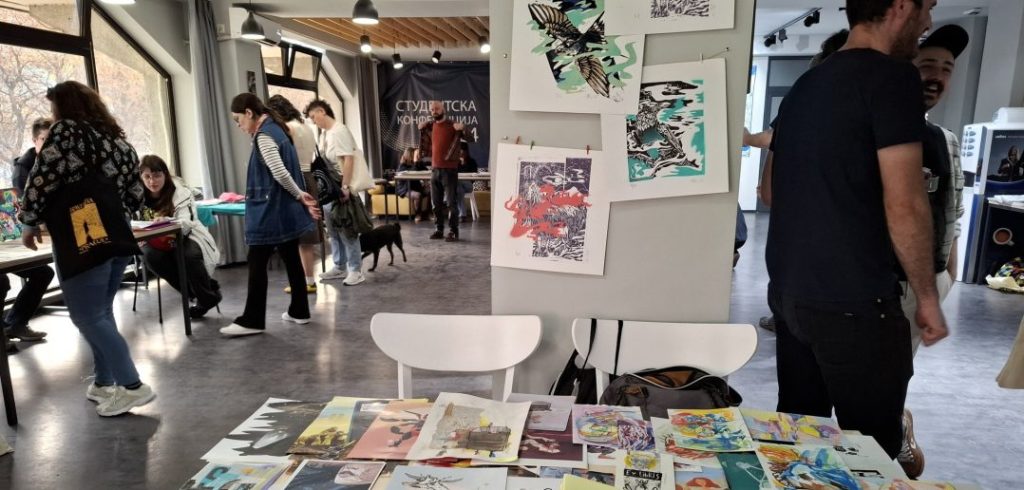 Нови излагачи + Слушаме Канал 103 „Зборуе радио Скопје“ + Работилница за длабок печат (Ана Трајковска) + Работилница за колаж (Скопје Колаж Колектив).