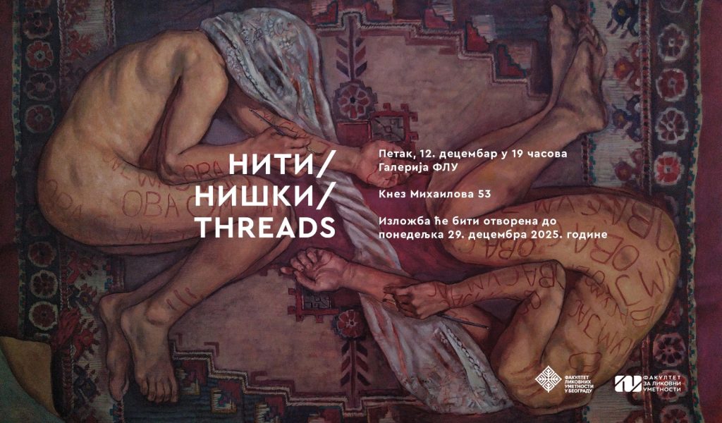 Во петок, 12 декември, со почеток во 19 часот, во Галеријата на Факултетот за ликовни уметности во Белград, на адресата Кнез Михаилова 53, ќе биде отворена изложбата „Нишки / Threads“, најновиот резултат од соработката меѓу Факултетот за ликовни уметности во Скопје и Факултетот за ликовни уметности во Белград. Изложбата ќе биде достапна за посетителите до понеделник, 29 декември 2025 година.