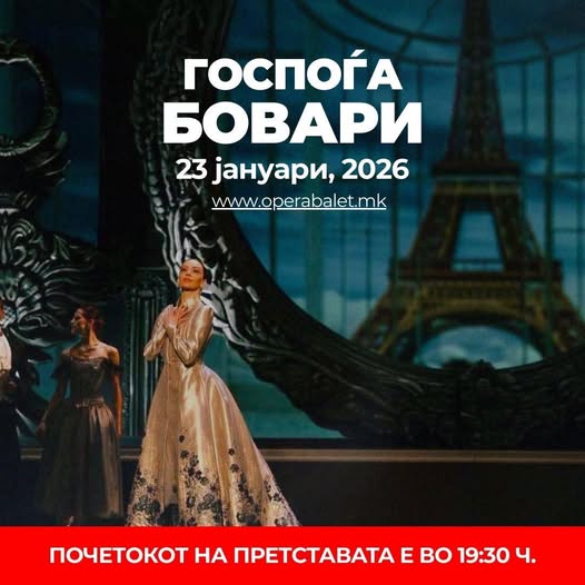 „Госпоѓа Бовари“ е балет за жената која сонува повеќе од животот што го живее. Приказна за љубовта, илузиите и цената на непромислените соништа.