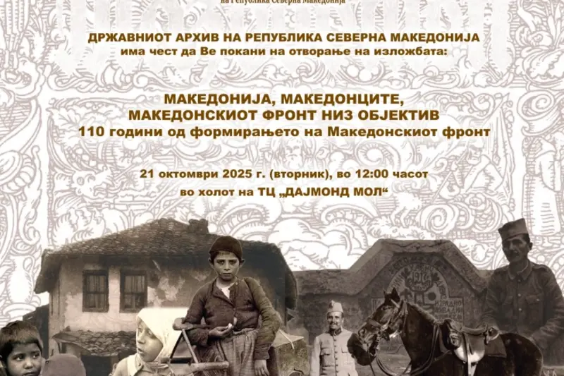 Државниот архив на Република Македонија денеска ќе ја отвори изложбата „Македонија, Македонците, Македонскиот фронт низ објектив“.