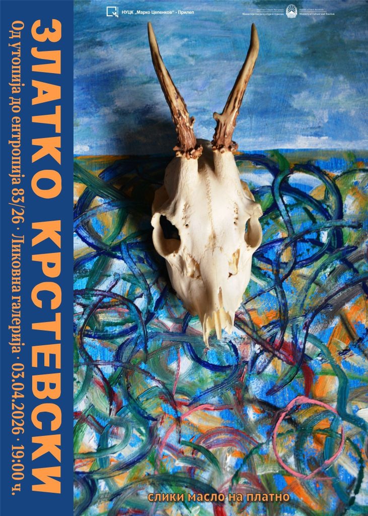 На трети април (петок) од 19 часот во Ликовната галерија на Центарот за култура ,,Марко Цепенков“ во Прилеп ќе биде отворена изложбата ,,Од Утопија до Ентропија 83/26“ од уметникот Златко Крстевски, на која ќе бидат претставени 30 слики масло на платно. Изложбата е поддржана од Министерството за култура и туризам.