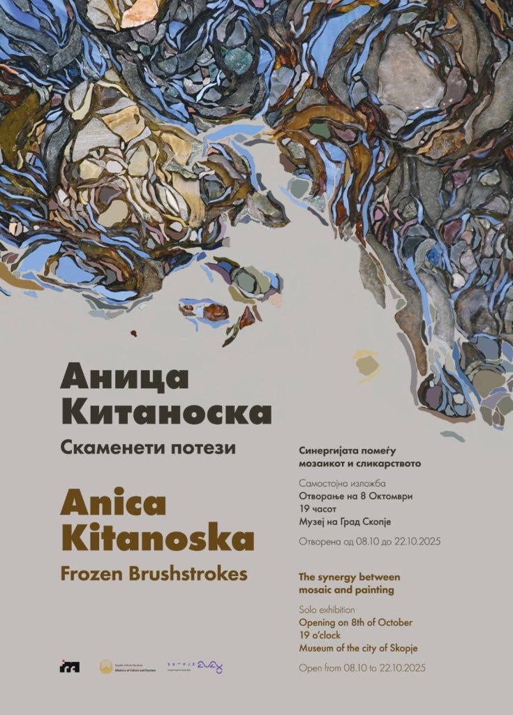 Вечерва со почеток во 19 часот се отвора самостојната изложба „Скаменети потези“ – синергијата помеѓу мозаикот и сликарството – на уметницата Аница Китаноска.