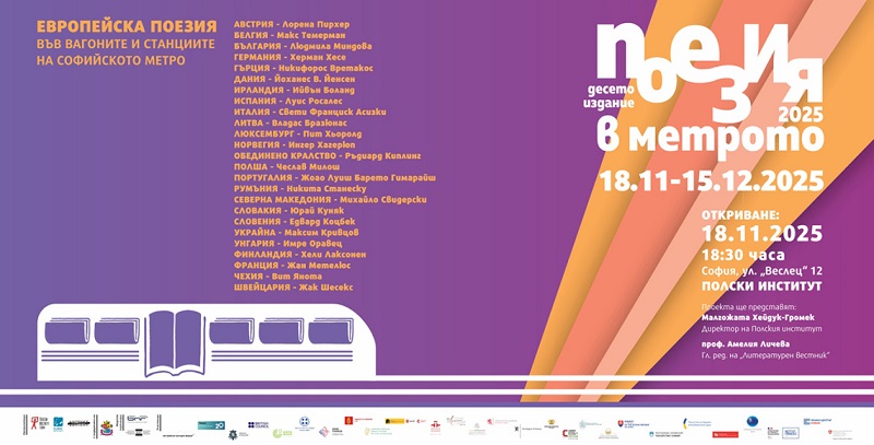 Десеттото издание на проектот „Европска поезија во вагоните и станиците на Софиското метро“ ќе се реализира од 18-ти ноември до 15-ти декември 2025, кога во вагоните и станиците на метрото во Софија ќе се чита европска поезија. Македонскиот културно-информативен центар за втори пат се вклучува меѓу организаторите. Проектот е инициран од Полскиот институт во Софија, а во него се вклучени европските културни центри од кластерот на ЕУНИК, странски амбасади во Софија, Општината на главниот град – Софија, Бугарското национално радио и телевизија.