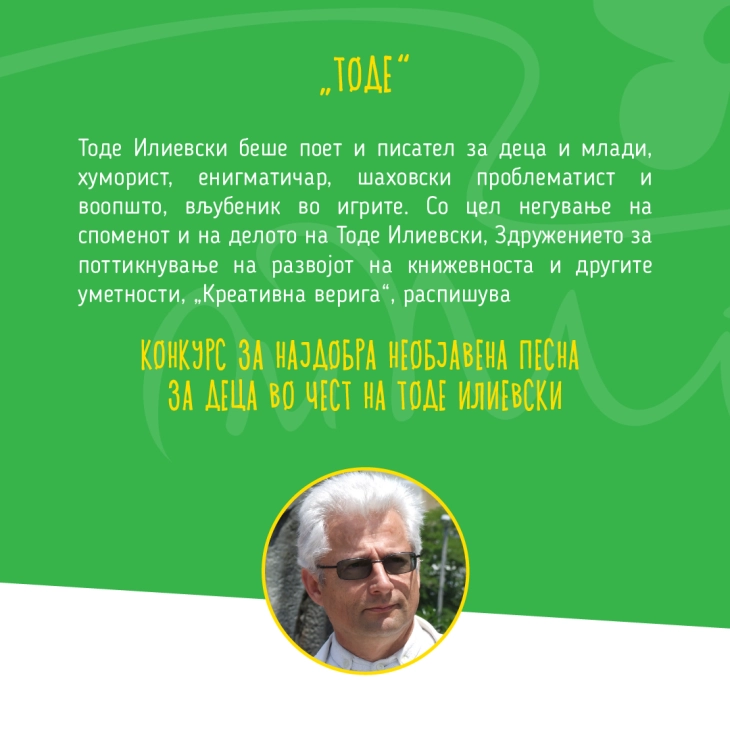 Манифестацијата е дел од Програмата за култура на Општина Охрид, а во нејзини рамки ќе бидат прогласени и победниците од Конкурсот за најдобра необјавена песна за деца „Тоде“.